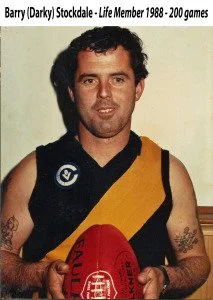Darky made his Senior debut in 1977 and quickly became a regular Senior player as a tough no nonsense Ruck Rover. A 200 plus game career was full of highlights with Senior Premierships in 1982, and 86, and several individual awards. In 1979, 81, and 83 he was given more League Best & Fairest votes off the umpires than any other Gormandale player, and represented the League in Interleague carnivals on many occasions. In 1988 on playing his 200th game he was awarded a Life Membership. After retiring Darky was a selector for a number of years assisting Alan Jennings and Brett Szabo in delivering the Clubs 3 Premierships in the first half of the 90’s. Darky also spent some time as a Committee Member and with his company is a significant Club Sponsor, being a way of continuing his support of the Club. For his significant contribution to Gormandale, Darky was inducted into the clubs Hall of Fame in 2014
