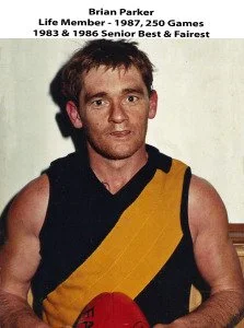 Parks came to Gormandale from Traralgon in 1979 taking up an Assistant Coach position for 2 seasons. His playing career realised an estimated 299 games before he retired. Along the way he played in 3 Senior Premierships being 1982, 86, & 89 and was Assistant Reserves Coach to great mate Mo Neave when the club won the 1994 Reserves Flag. Senior Best & Fairests in 1983 & 1986 were a highlight of his career which also saw him play for the League in the 1984 Interleague carnival. Parks was a great mover on the field, cool under pressure, and a safe mark. While he mainly played as a half back flanker as part of the renowned Neave, Hore, Parker half back line, his overhead and judgement skills could see him play well above his height. Off the field Parkes was a valuable Member of the Clubs General Committee for a period of time. In 1987 he played his 200th game and received a Life Membership, and was inducted into the Clubs Hall of Fame in 2014