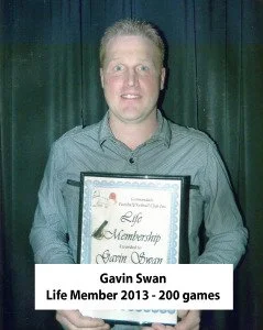 Swany started at the club in 2000 as a Thirds player and has not missed a season since resulting in him playing his 300th game during the 2019 season. Swany has played most of his Football as a key defender and is renowned for his reliability and never give up attitude. In 2010 was a member of the clubs Reserves premiership team, and received his Life Membership in 2013 after playing his 200th game, and in 2015 he won the clubs Reserves B&F. Off the field Swany is a great Clubman quick to assist in any capacity.