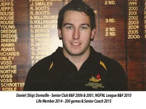 Son of Club legend and Life Member Jeff “Skippy” Domaille, Skip was always destined to play his football at Gormandale. He commenced as a Thirds player back in 2000 and became a regular Senior player with all his club games after Thirds at Senior level. With the exception of 1 season away with work Skip played right through to early 2019 when he retired after amassing in excess of 250 Senior games for the club. A highly skilled on baller, along the way be joined the very few be a dual Senior Best & Fairest winner with wins in 2006 & 2011. He was honoured in 2010 when we won the League Best & Fairest award and was named in the NGFNL Team of the Year on a number of occasions. Skip also coached the club in season 2016. He played his 200th game during the 2014 season and subsequently was awarded a Life Member of the club.