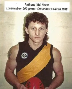Mo started in Gormandale in the Thirds in the early 80’s before progressing to the Seniors where he played in 8 Grand Finals winning 1986, 89, 91, & 92. He reached the pinicle of his career in 1988 with a Senior Club Best & Fairest. He also Coached the Reserves to a Premiership in 1994, and won the League and Clubs Reserves Best and Fairest in the same year. He followed up with a second League Best & Fairest in 1996. Over an estimated 300 club games Mo was a rugged straight through half back flanker who along with Brian Parker & Titch Hore formed a formidable half back line that served the club well for many years. Mo received a Life Membership in 1991 on playing 200 games, and in 2014 was inducted into the clubs Hall of Fame.